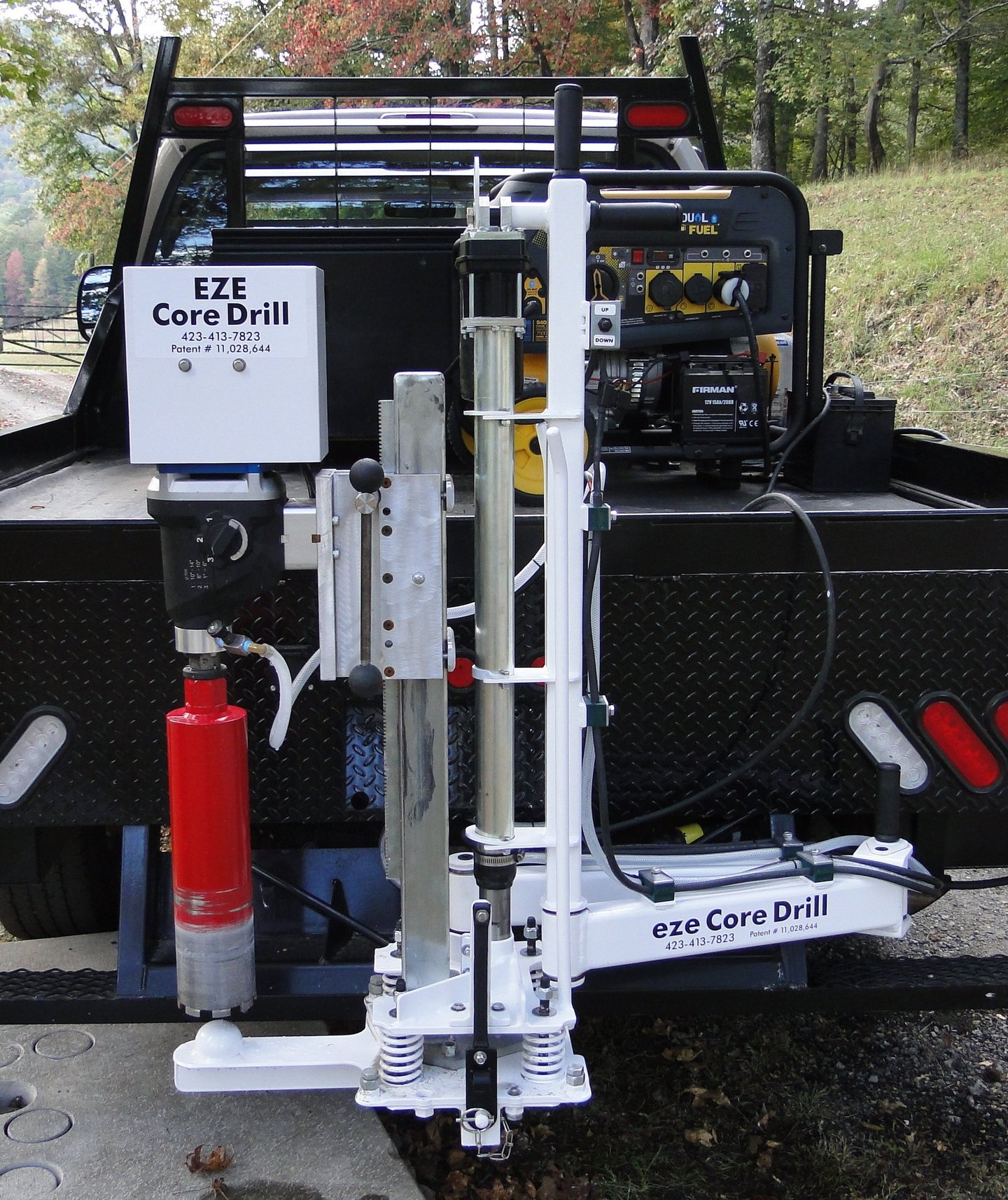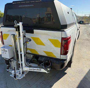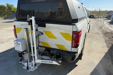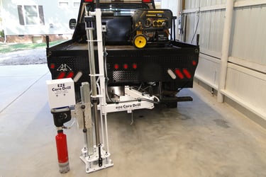 The Hitch Mounted is a patented pavement coring system designed for maximum mobility, fast deployment, and safe single-operator use. Mounting directly to a standard 2” receiver hitch, the system uses vehicle-weighted hydraulic down-pressure to provide a stable, ergonomic coring solution without permanent vehicle modifications.