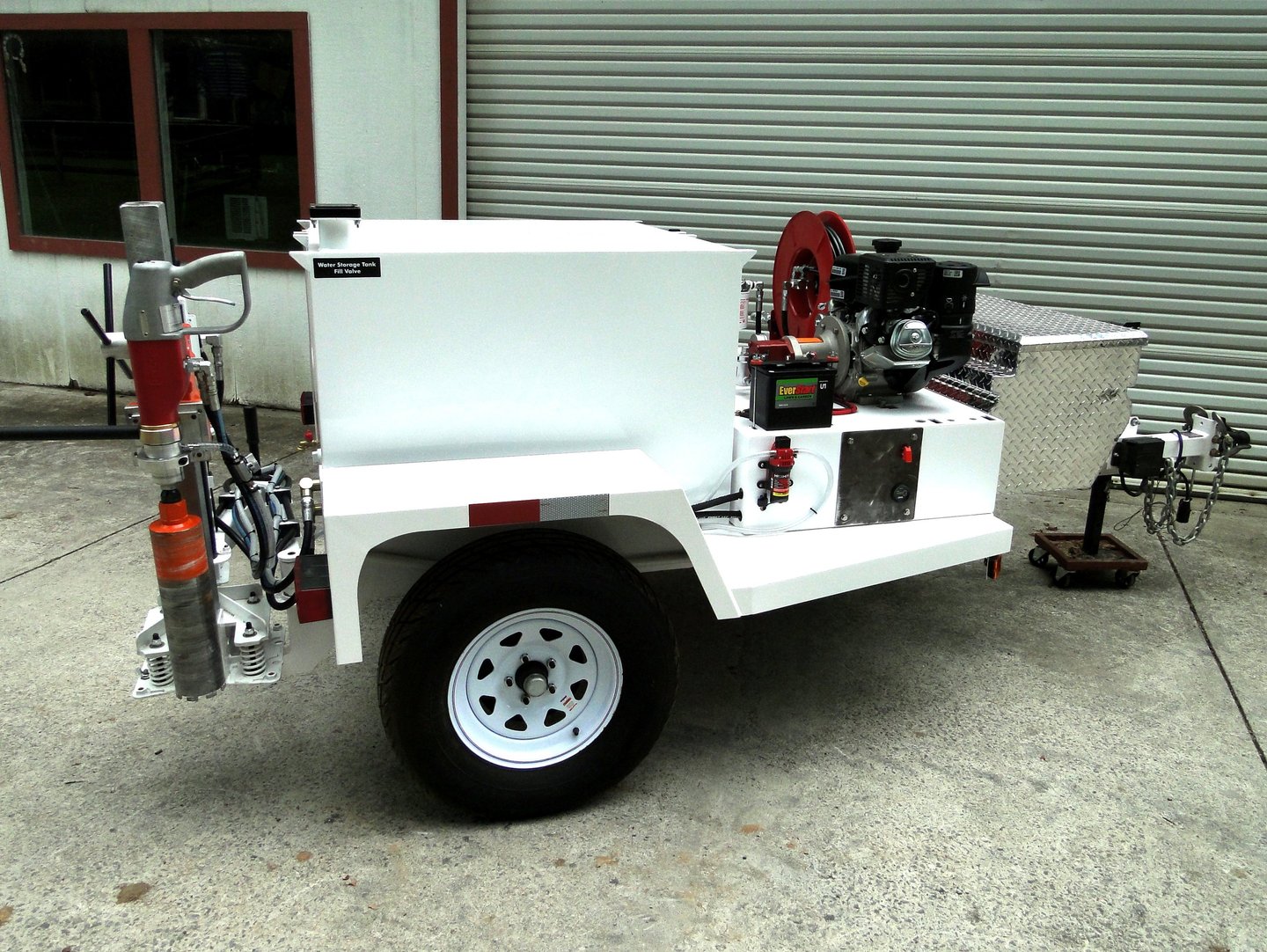 The Trailer-Attached Eze-Core Drill delivers the same patented coring performance as the hitch-mounted system, packaged into a fully self-contained, high-capacity platform. Designed for extended operations and higher-volume coring, this configuration integrates power, water, and storage into a single, jobsite-ready solution.