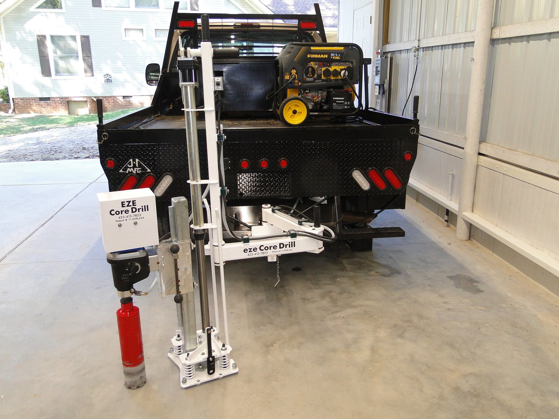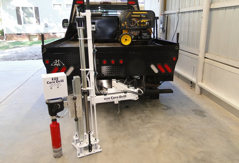 The hitch-mounted Eze-Core Drill attaches to a standard 2” receiver and uses the vehicle’s weight for hydraulic down-pressure. Designed for single-operator use, it deploys quickly and is ideal for jobs where speed, mobility, and minimal lane closure are critical.